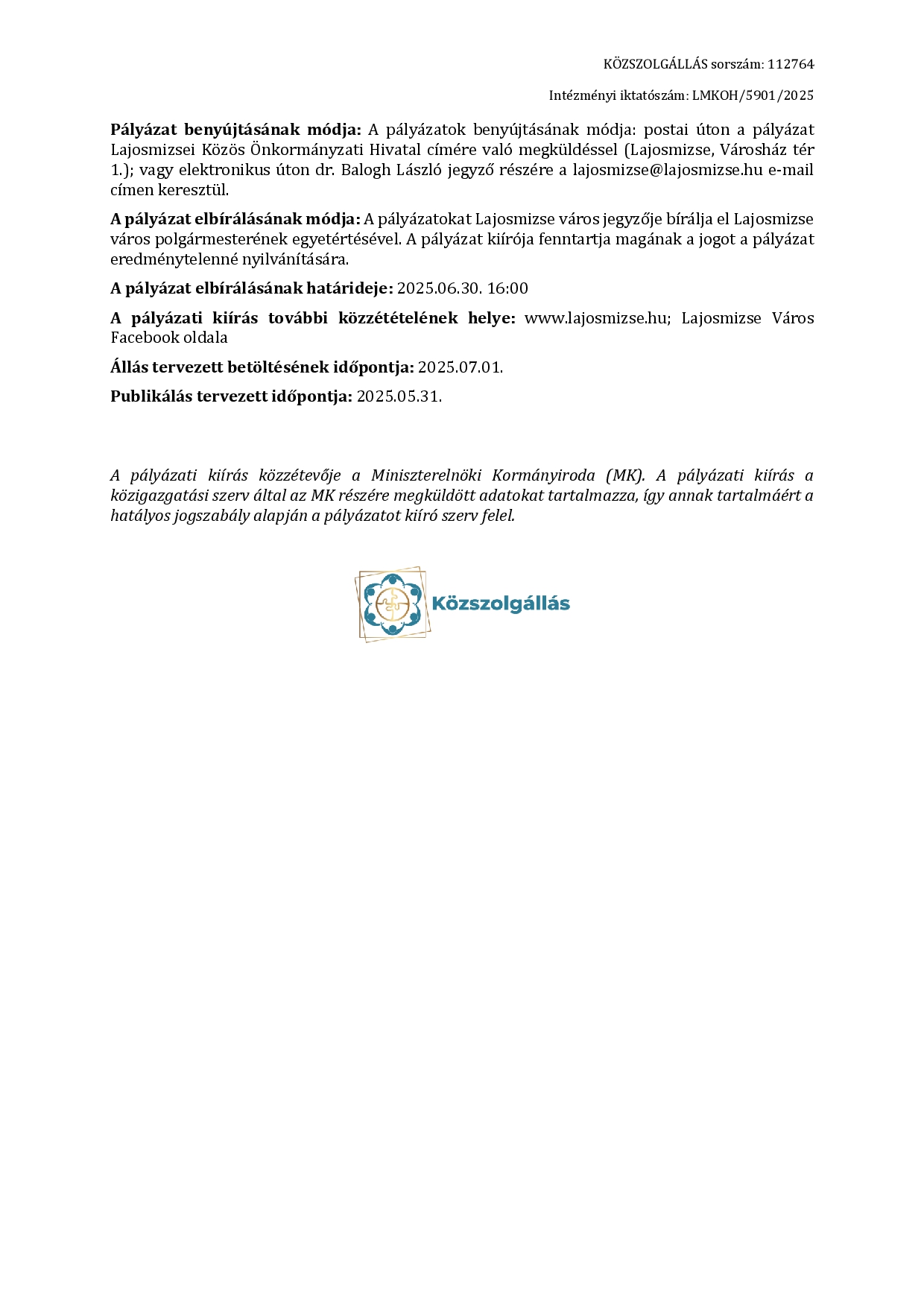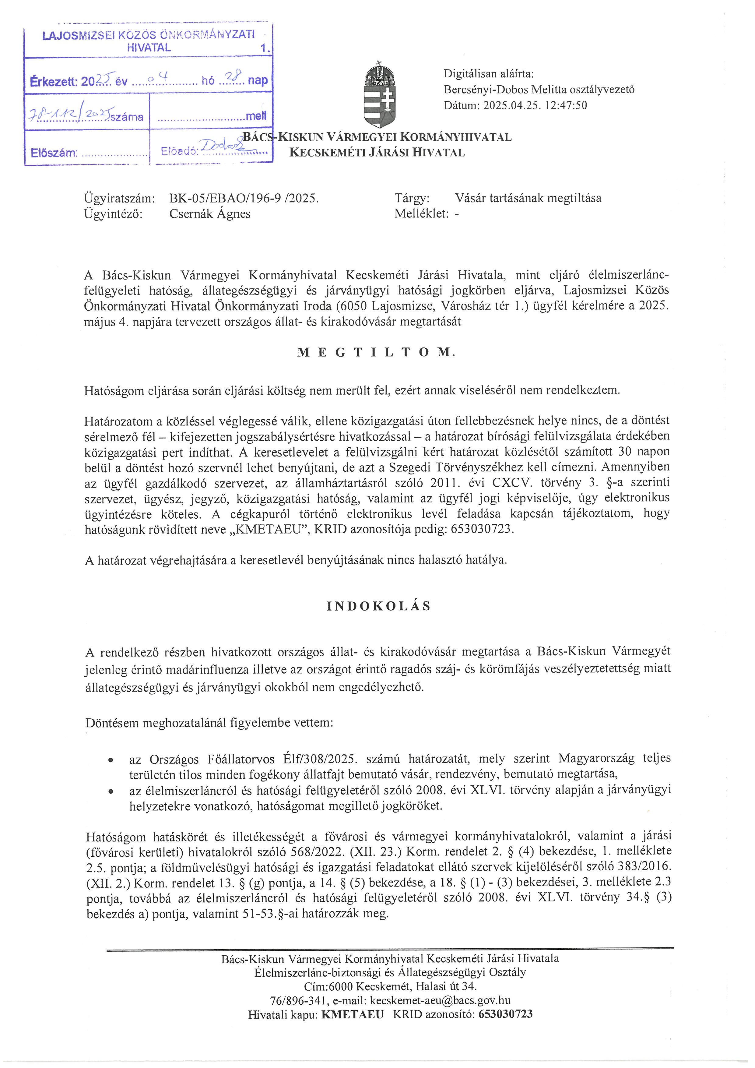 Kifüggesztés napja: 2025.03.31.