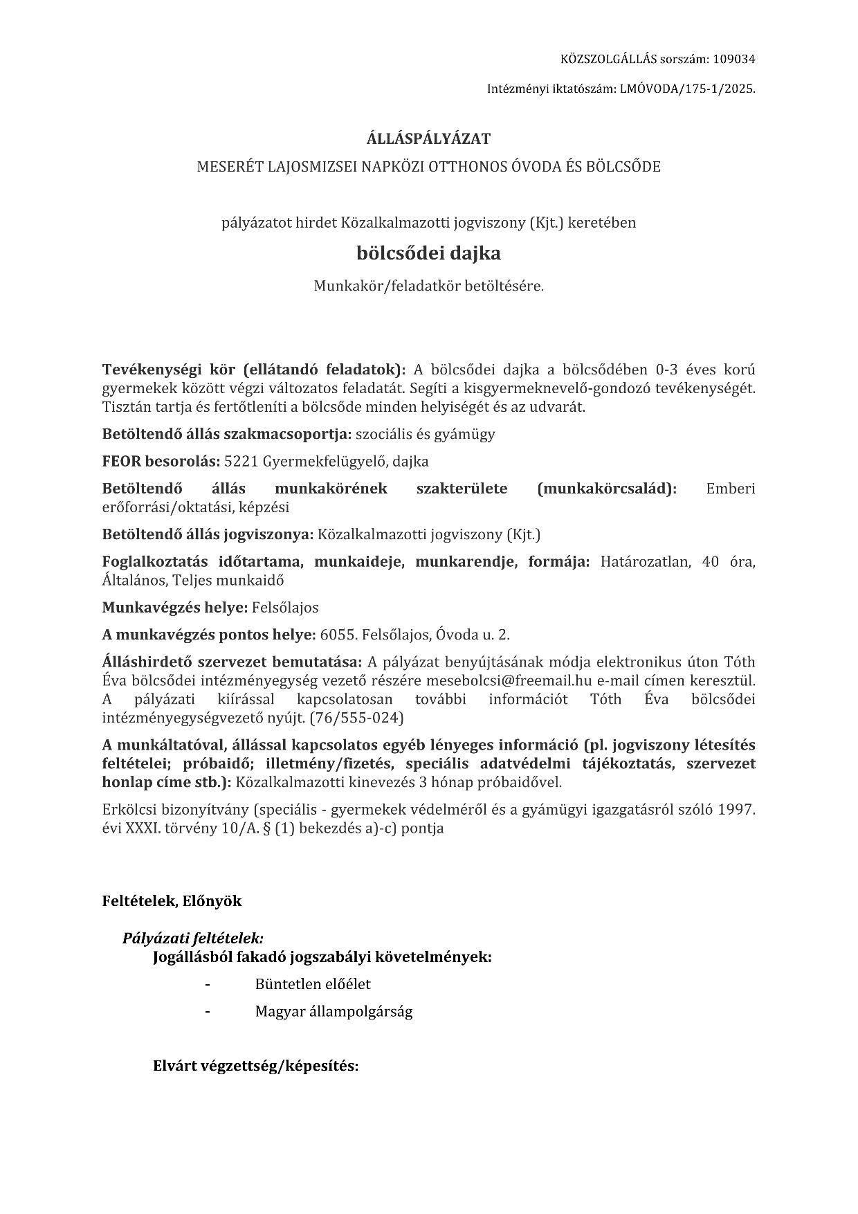 Álláspályázat