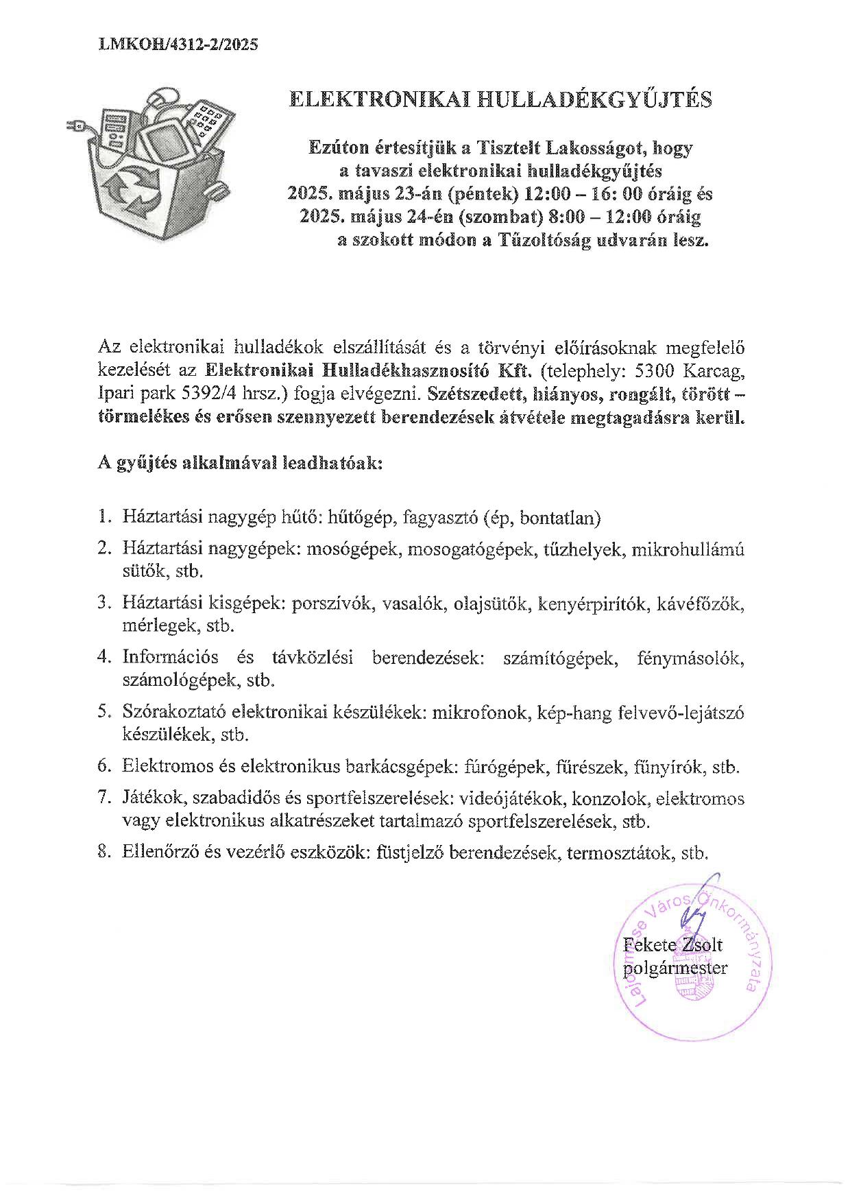 Fekete Zsolt polgármester úr tájékoztatója