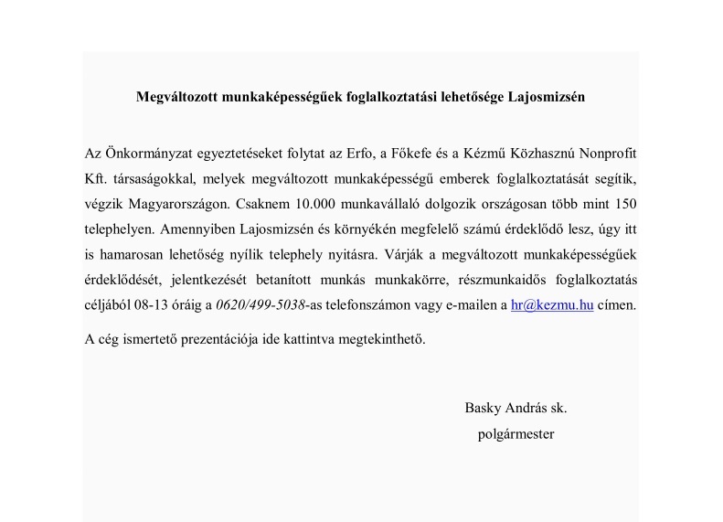 - Lajosmizsei Közös Önkormányzati Hivatal