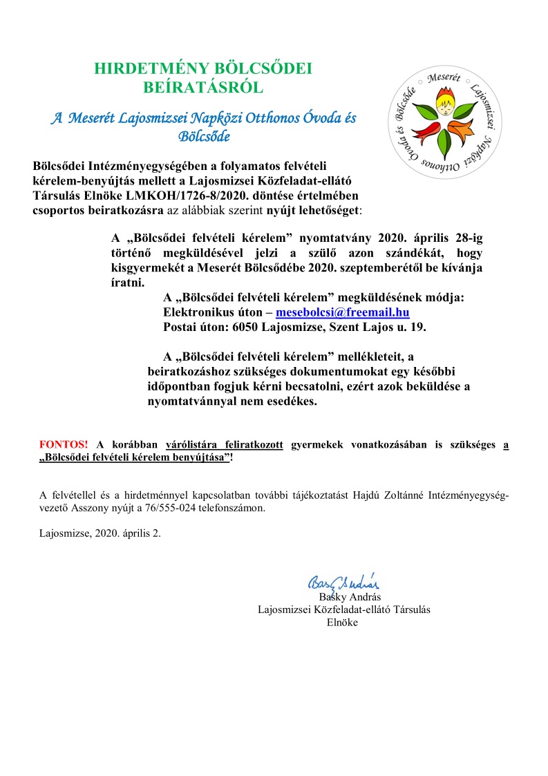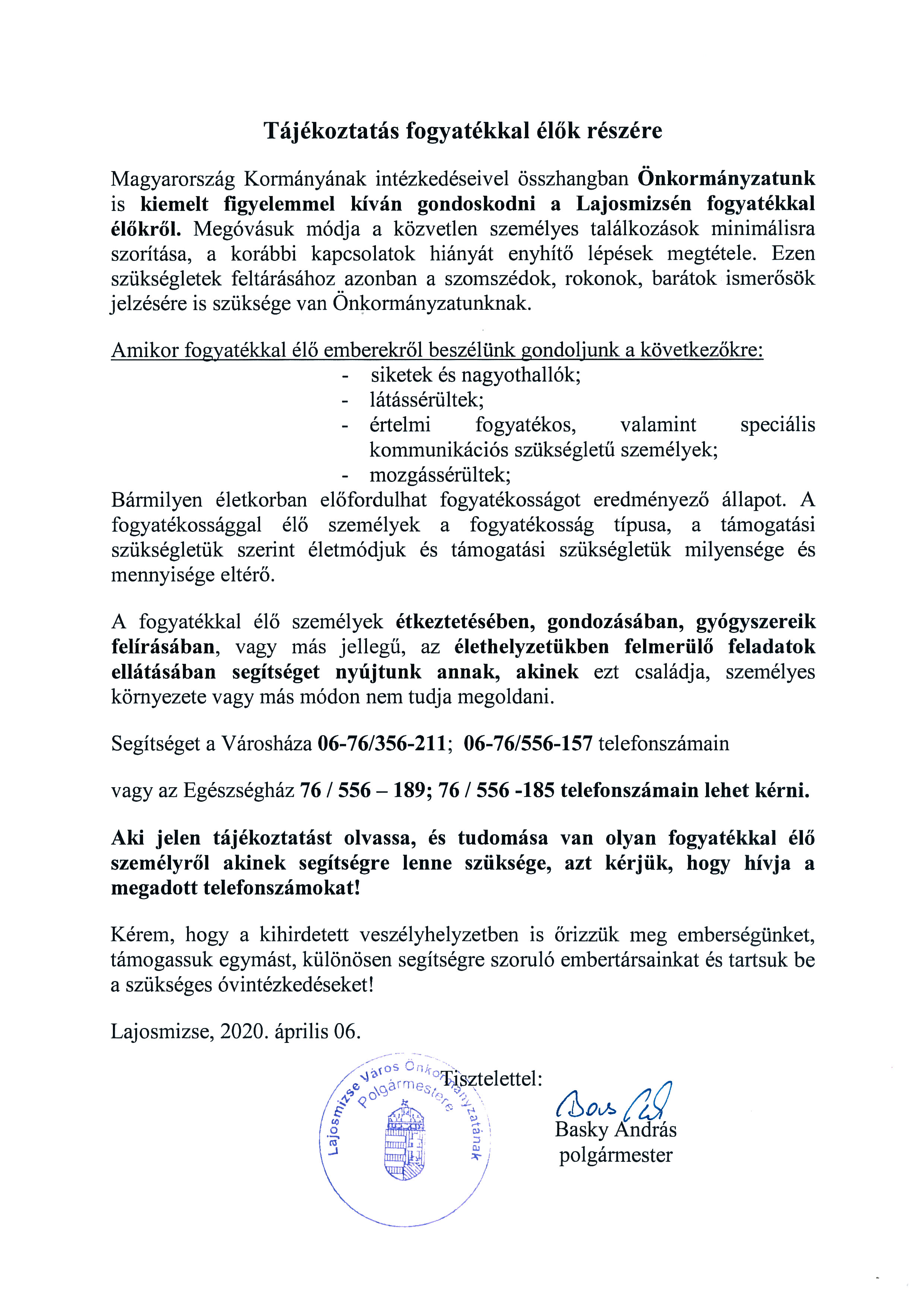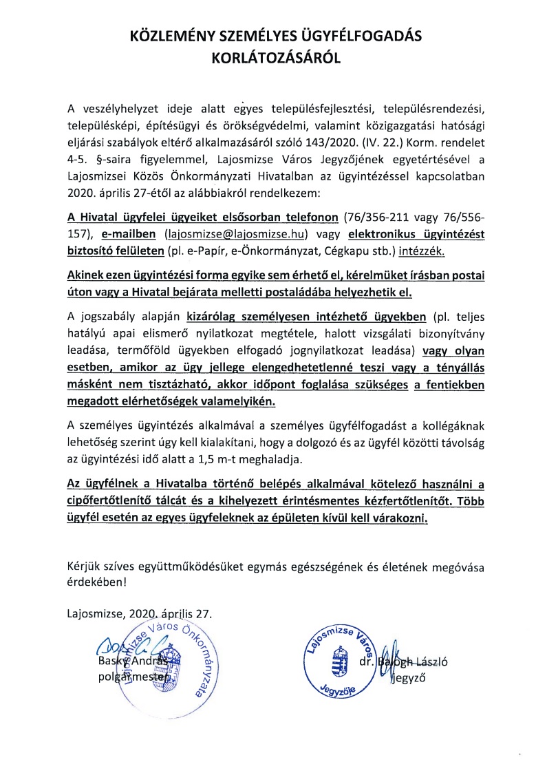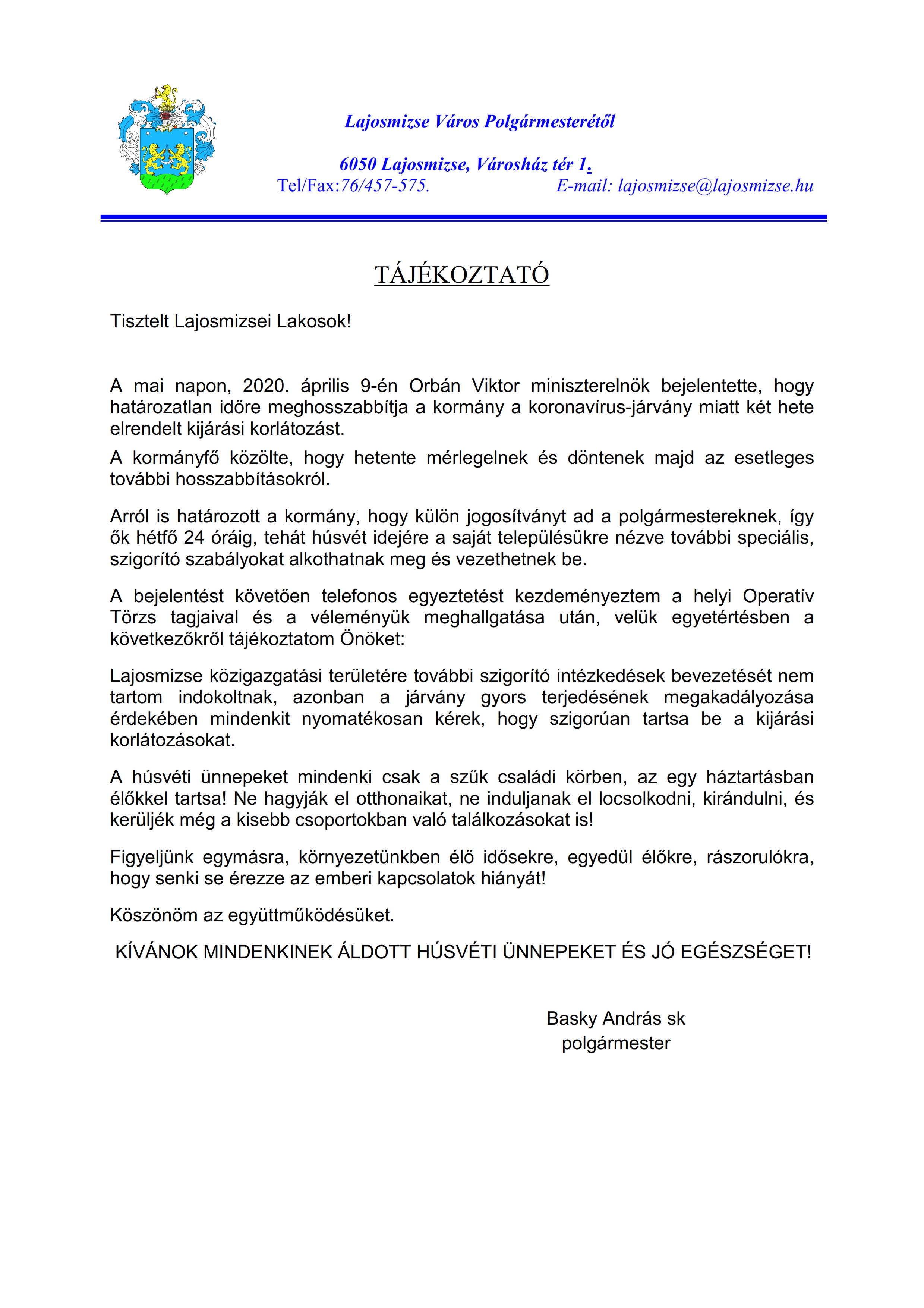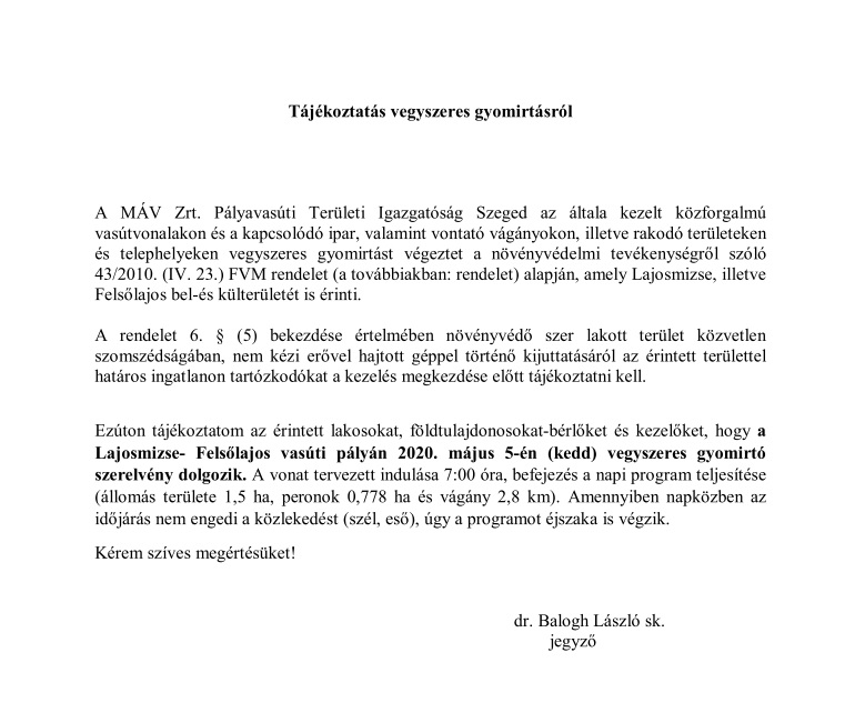 További információ kérhető: Kasnyikné Földházi Tünde (kornyezetvedelem@lajosmizse.hu, +36 76 556 148)