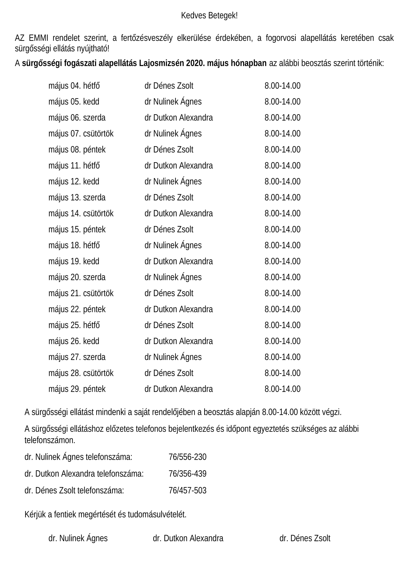 - osztályfőnök neve, és elérhetőségei (e-mail címe, telefonszáma)
