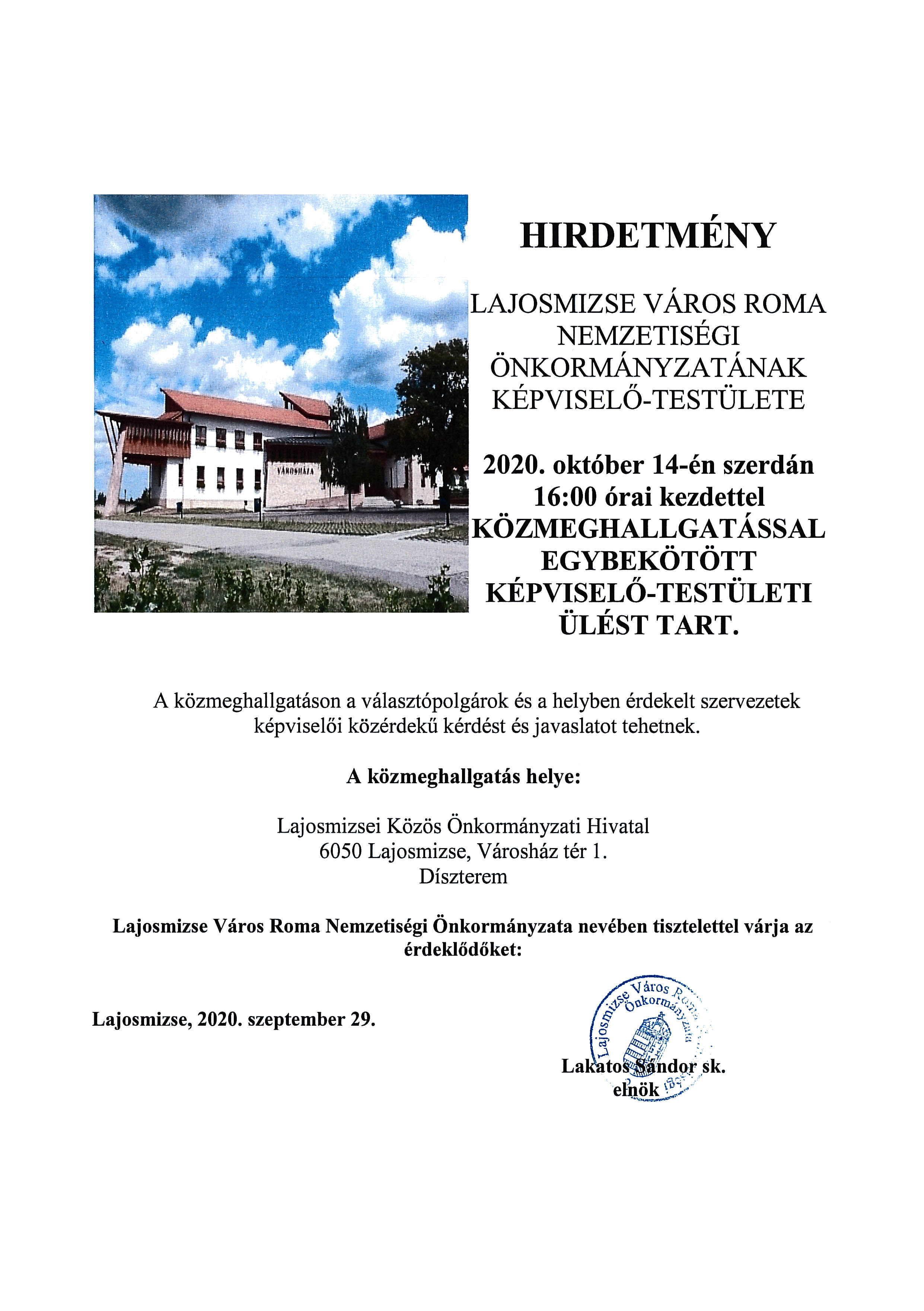 H-6050 Lajosmizse Városház tér 1.