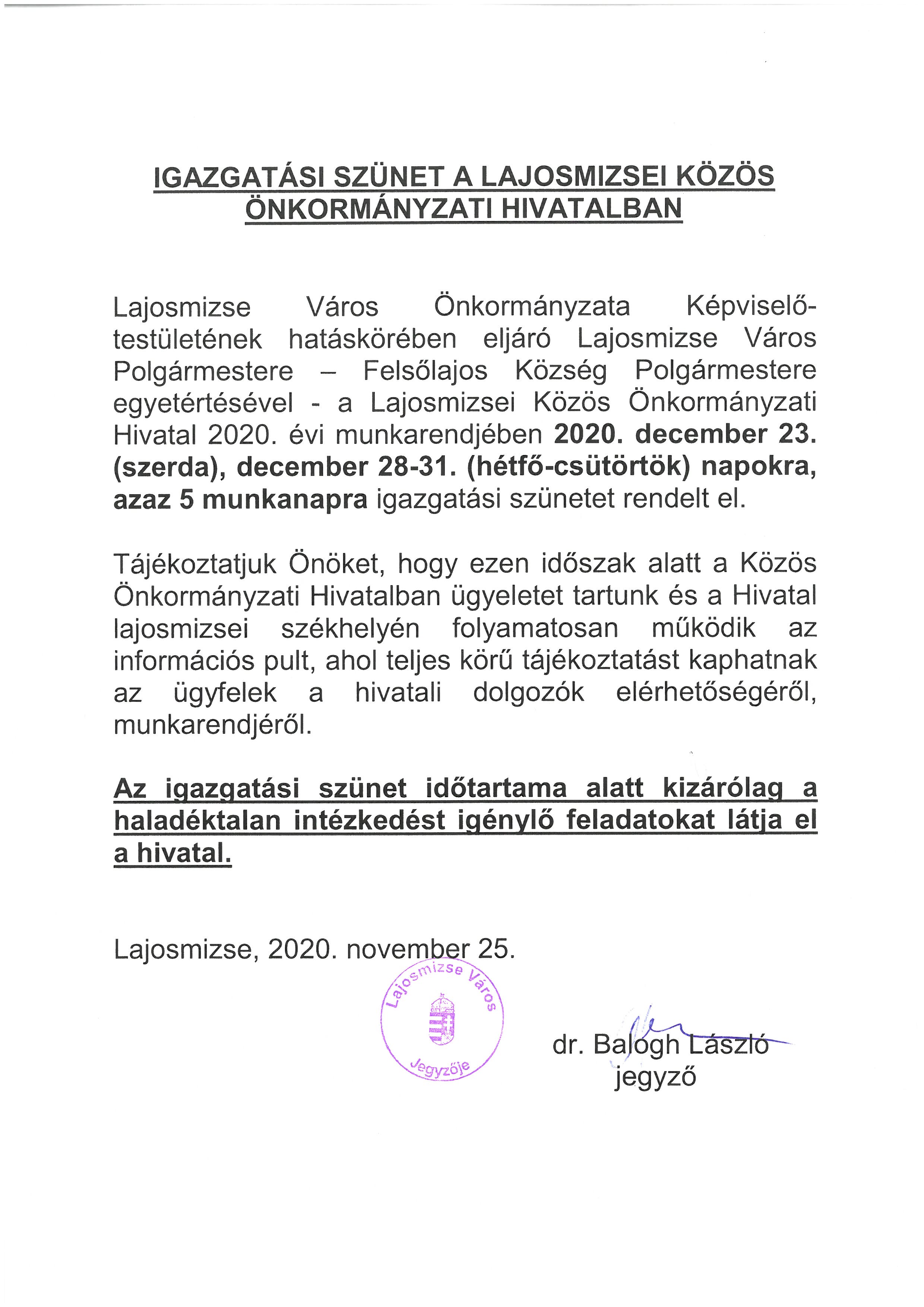 - Lajosmizsei Közös Önkormányzati Hivatal
