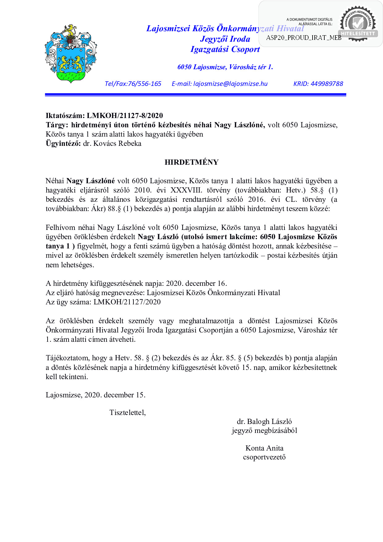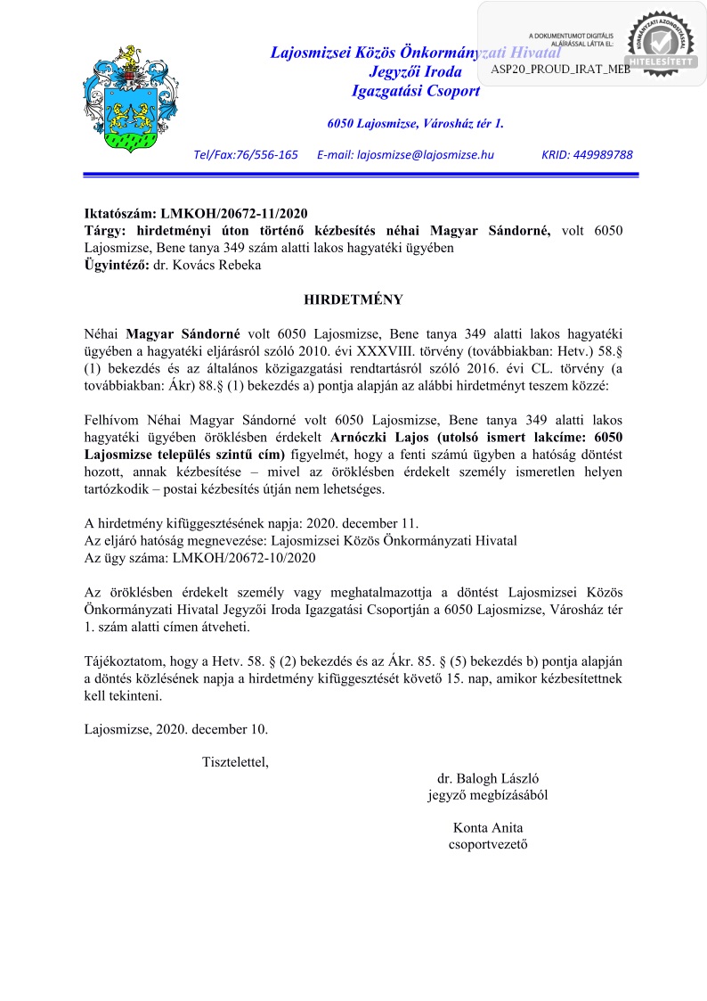 - Lajosmizsei Közös Önkormányzati Hivatal