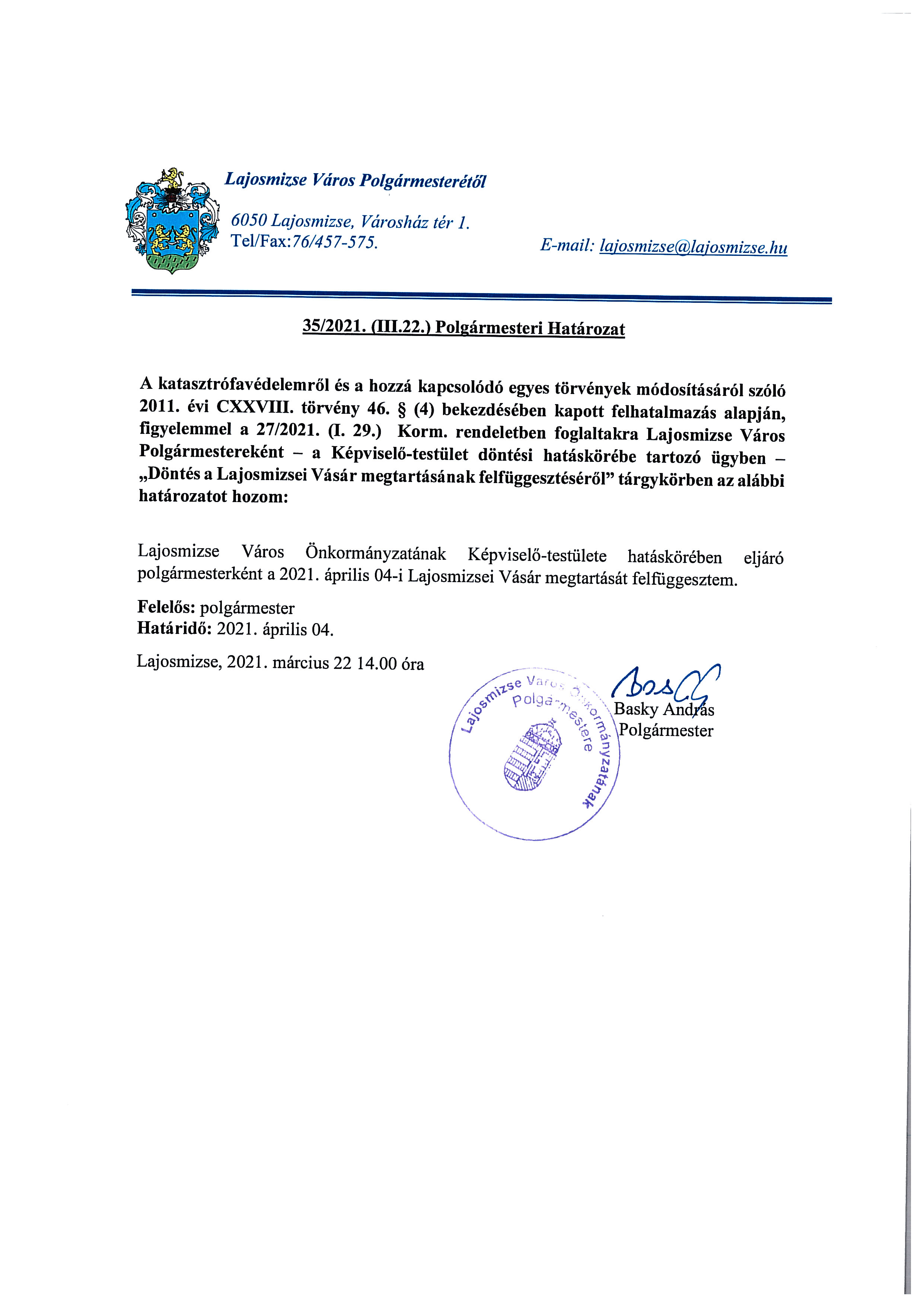 H-6050 Lajosmizse Városház tér 1.