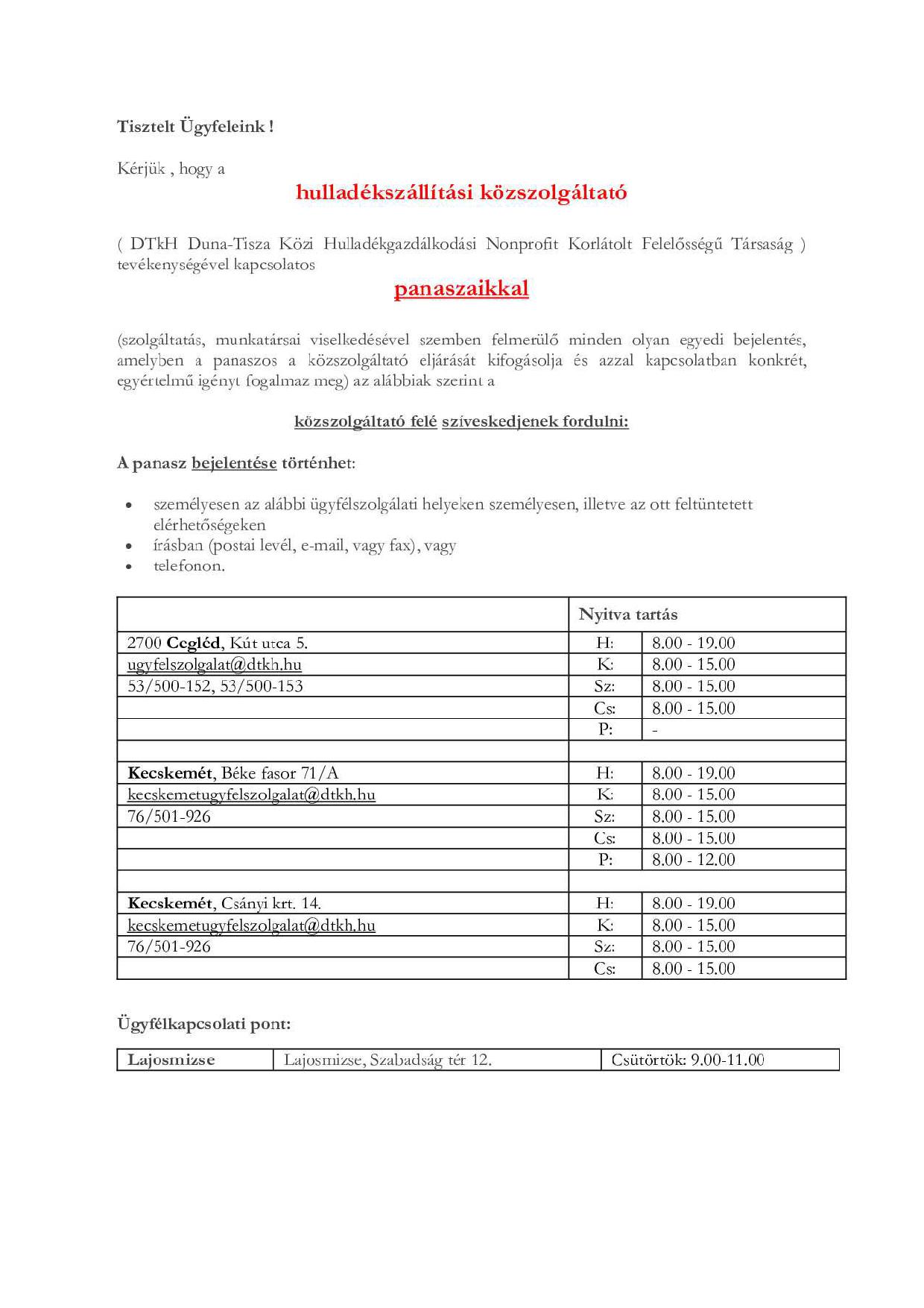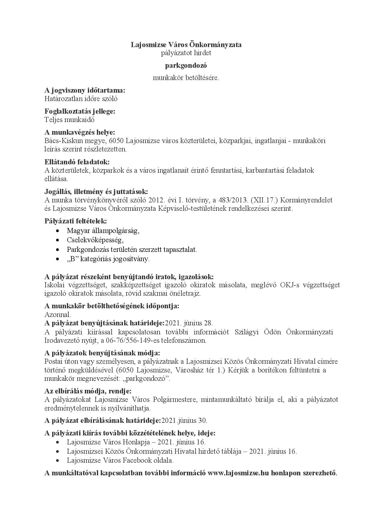 H-6050 Lajosmizse Városház tér 1.