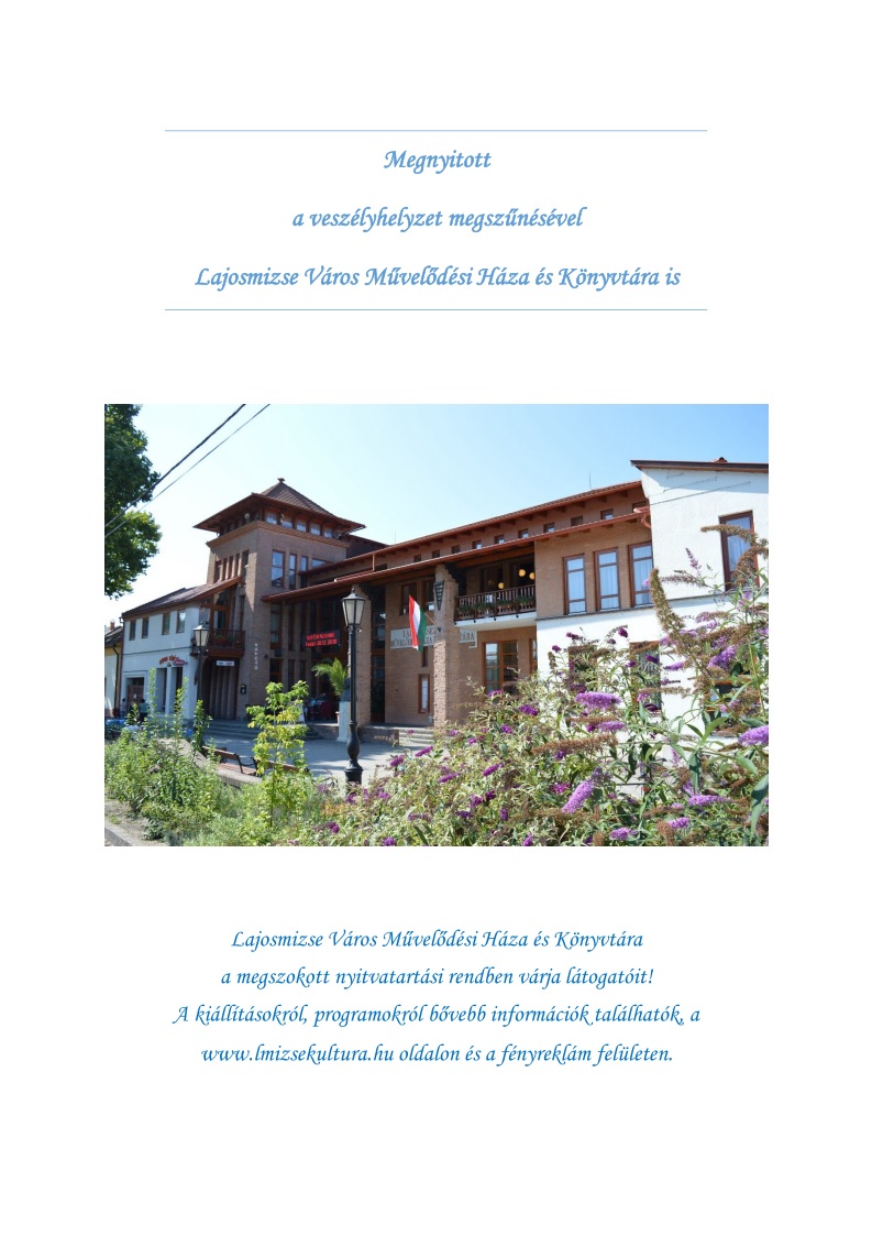 További információ kérhető: Kasnyikné Földházi Tünde (kornyezetvedelem@lajosmizse.hu, +36 76 556 148)