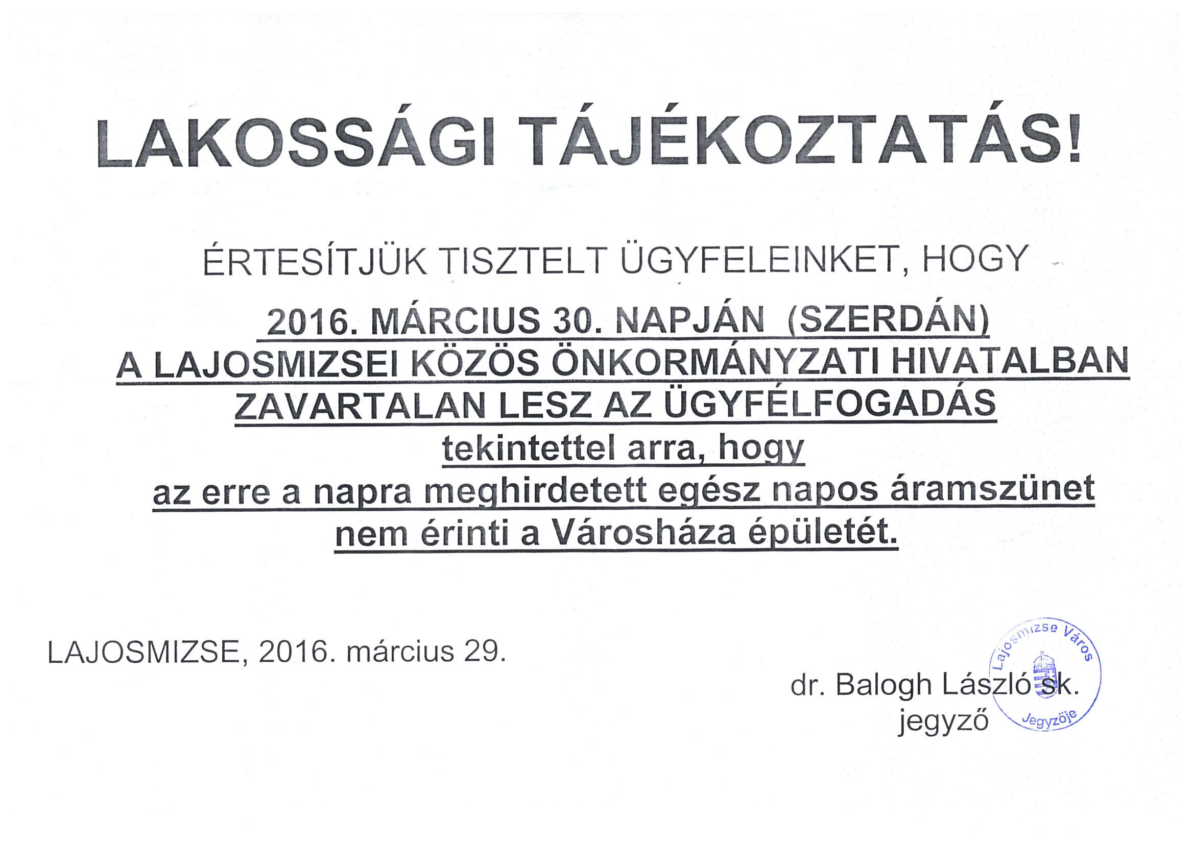 H-6050 Lajosmizse Városház tér 1.